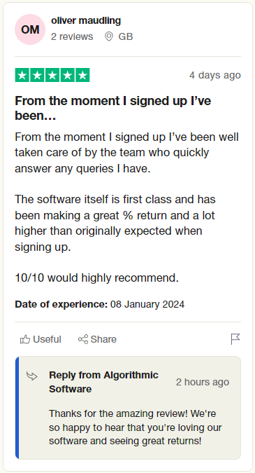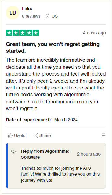 We’ve observed gains ranging from 5% to 20% using our Proprietary Strategy & Automated System. However, the actual returns depend on the specific software utilised and your individual risk tolerance.
