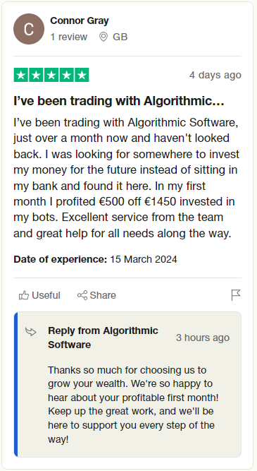 We recommend starting with a minimum investment of £500 to maximize the potential of the algorithm bots in growing your capital.